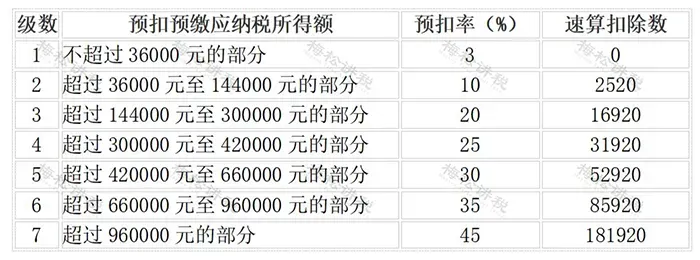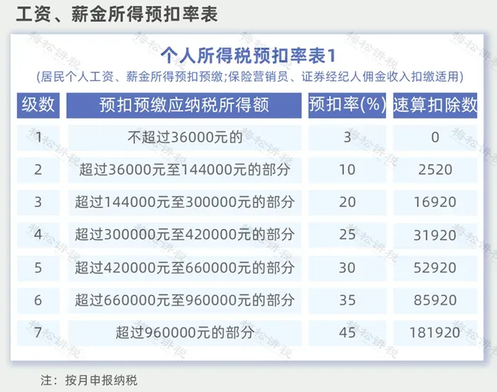 最新版个人所得税税率表!
